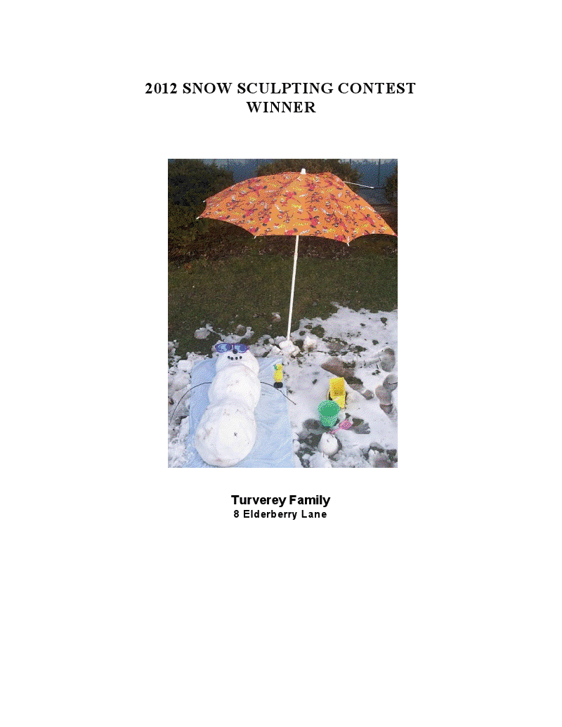 Congrats to the TurvereyFamily on Elderberry Lane winners of this year’s Snow Sculpting contest. Thanks to our friends at Liverpool Pizzeria for providing a great prize to the winners!